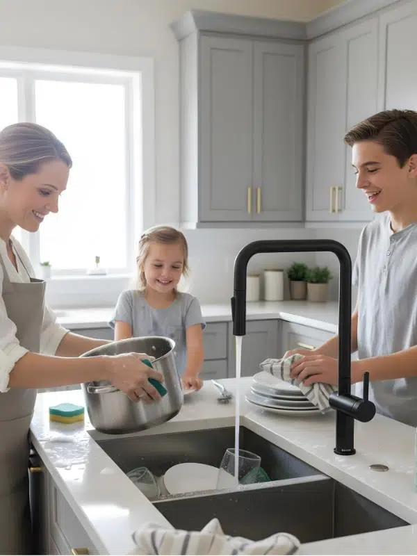 Karıştırıcı, karışmış suyun geri akmasını önlemek için geri dönüşsüz vanalarla donatılmıştır.