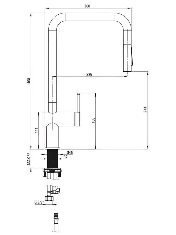 45 cm bağlantı hortumları dahildir.